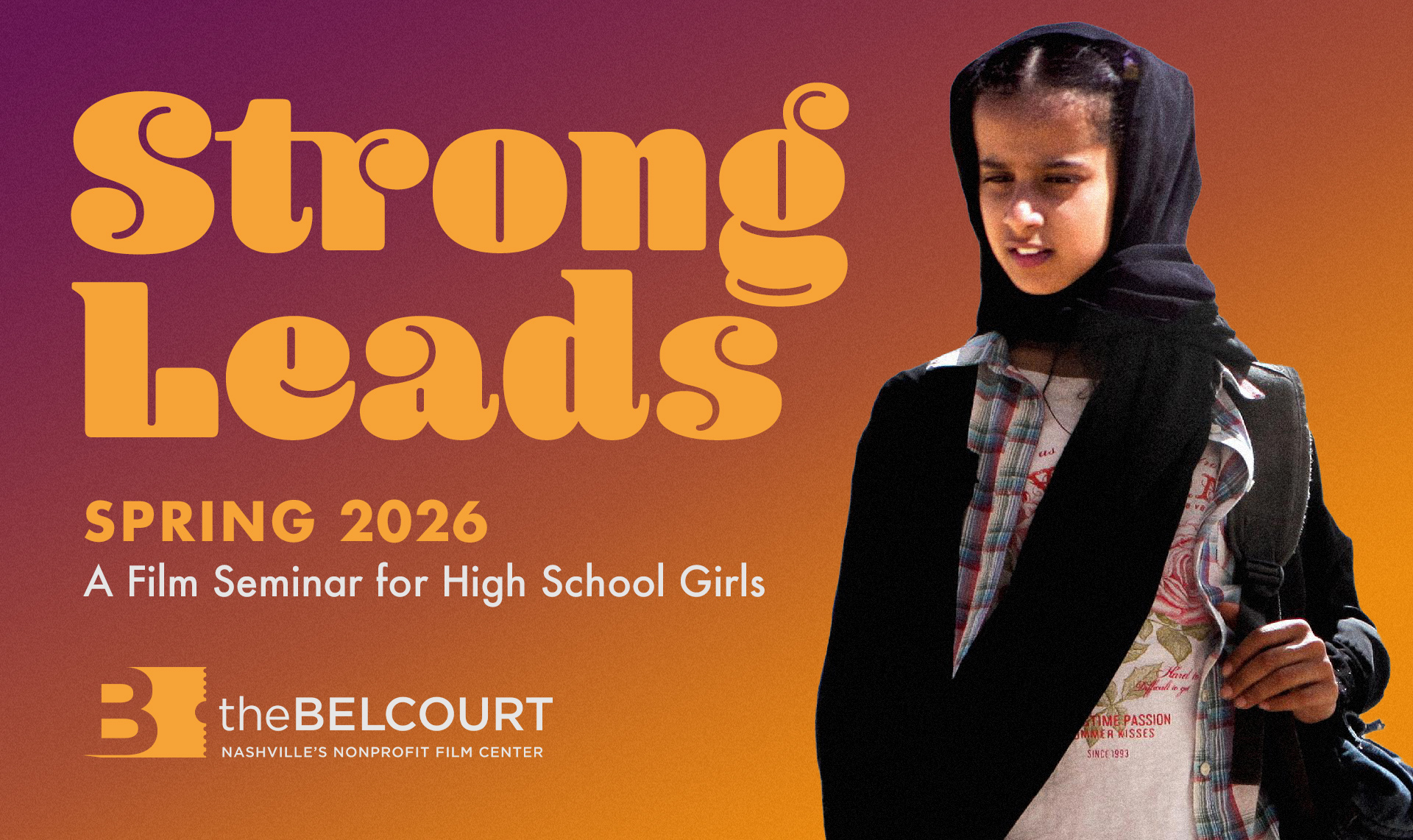 Strong Leads: A Film Seminar for High School Girls is a free after-school program spotlighting films by women. It is designed for 10th, 11th and 12th girls of all identities, including gender-nonconforming youth. A presentation of the Belcourt’s education and engagement program, Strong Leads explores gender representation in cinema, in the Hollywood establishment, and in film discourse.